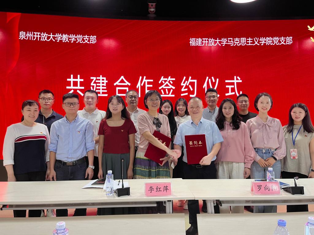 签约仪式上,马克思主义学院党支部书记罗向阳、泉州开放大学教学党支部书记李红萍分别介绍了各自党支部党建和业务工作开展情况,分享了工作经验。在双方支部党员见证下,罗向阳、李红萍代表支部签署了共建协议书。根据协议书,双方支部将在加强政治理论学习、推进教学改革、创新服务模式和增强支部服务功能等方面开展合作,激发支部党建新动能。